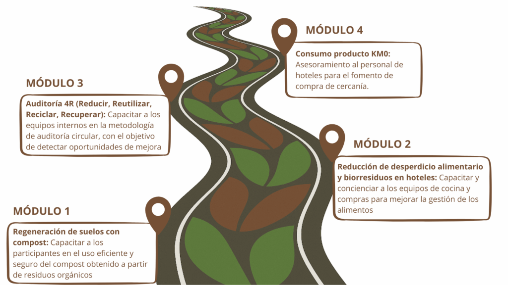 Comunidades Turísticas Circulares tiene como uno de sus ejes la apuesta por la formación, por ello ponemos en marcha este completo programa formativo que impulsará la cualificación de distintos perfiles profesionales para ayudar a las organizaciones y empresas a impulsar la economía circular de los biorresiduos para la obtención de compost, como uno de los pilares fundamentales de su apuesta por la sostenibilidad.
